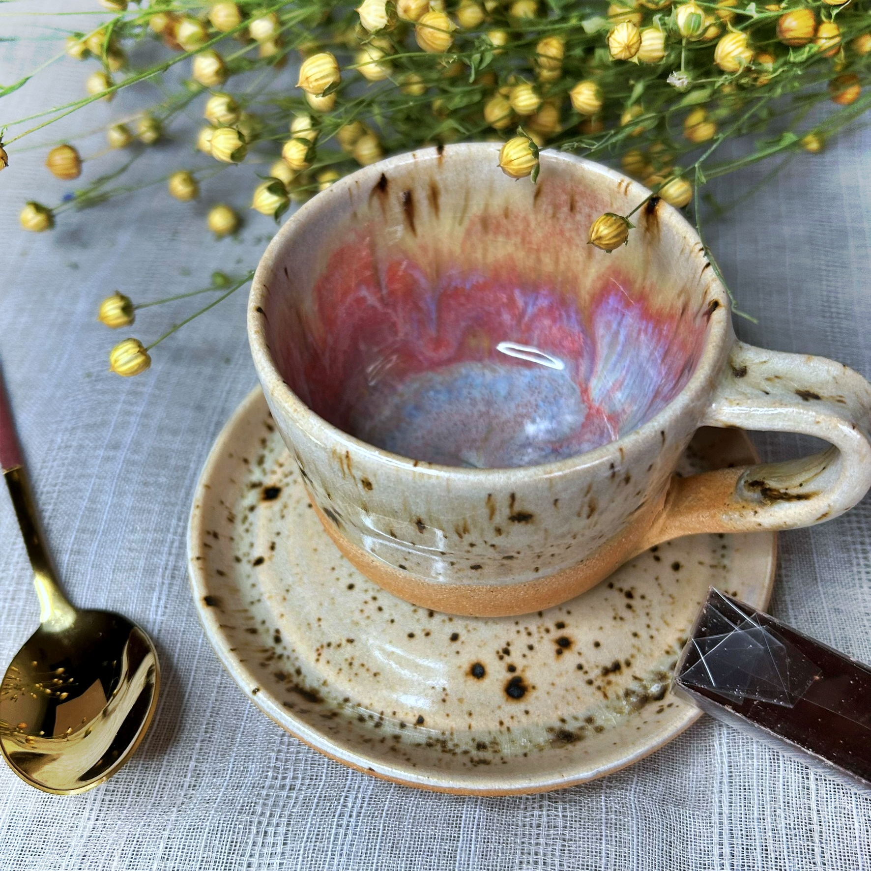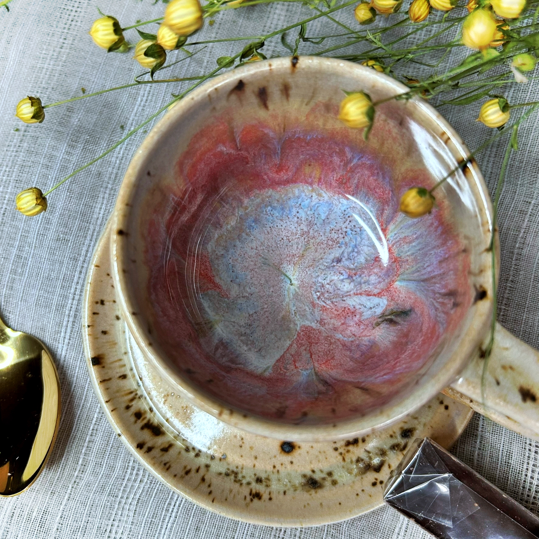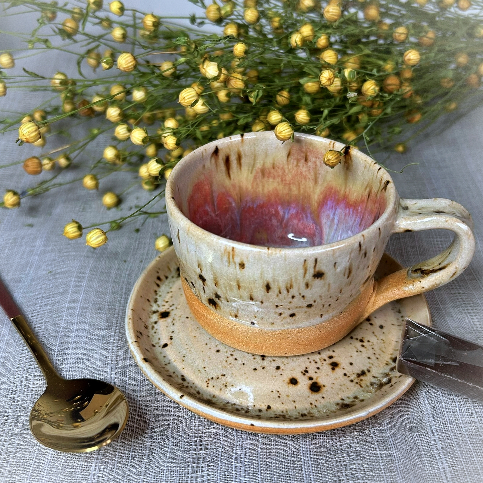 Hrneček i podšálek jsou ručně vytočené na hrnčířském kruhuJsou kvalitní, pevné a odolné díky vysokému výpalu na teplotu 1220 °C. Jemně glazovaný povrch zajišťuje krásný jemný vzhled i snadnou údržbu, sadu můžete dát i do myčky.