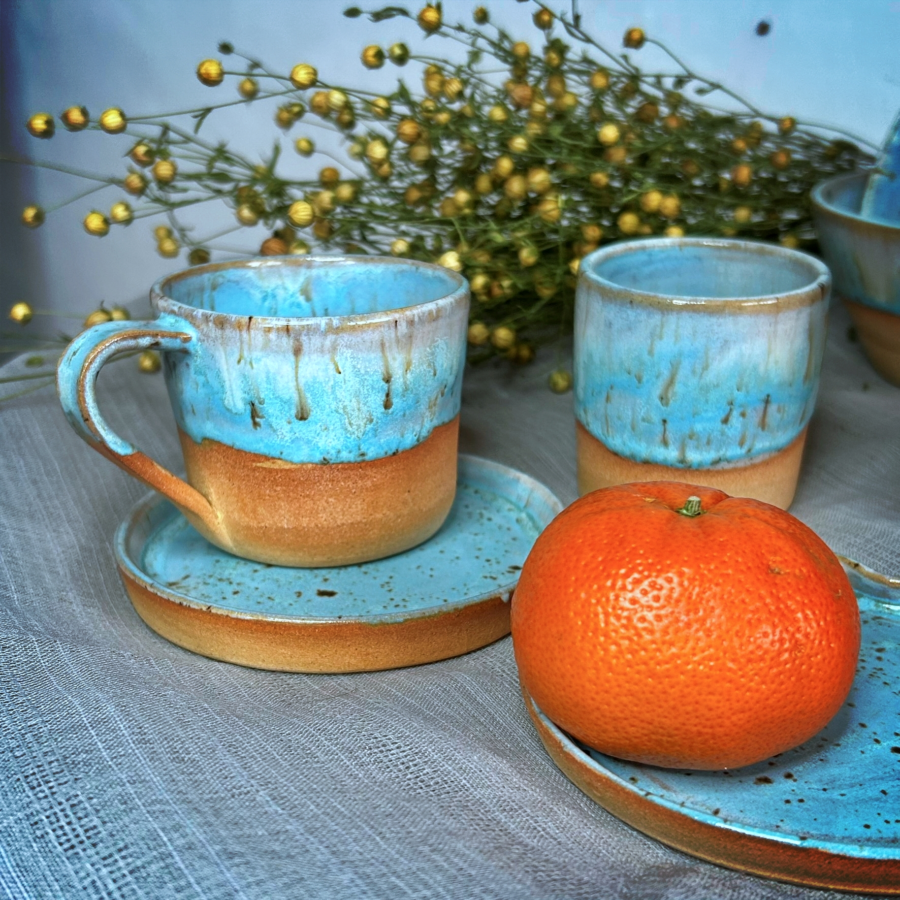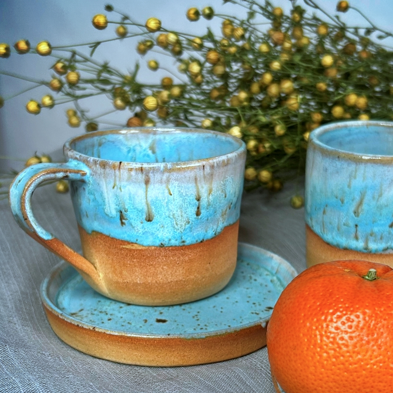 Hrneček i podšálek jsou ručně vytočené na hrnčířském kruhu. Jsou kvalitní, pevné a odolné díky vysokému výpalu na teplotu 1220 °C. Jemně glazovaný povrch zajišťuje krásný jemný vzhled i snadnou údržbu, sadu můžete dát i do myčky.