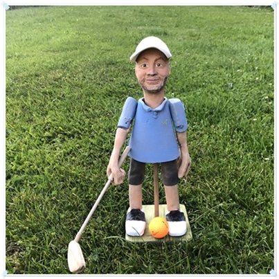 Snažím se o co největší podobnost hlavy s člověkem při zachování svého rukopisu. Oblečení nemůže být zcela totožné s předlohou, abyste se nedostali do dalšího finančního pásma a také kvůli naším časovým možnostem. Nevytvářím tedy identickou kopii vzorované košile, ale za příplatek mohu zhotovit nápis, logo na oblečení, dresu či jiný nesložitý design. Nemohu ze stejných důvodů ani malovat napodobeninu tetování.